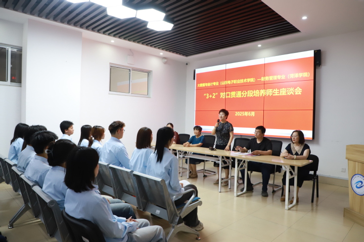 為深化校際合作,推進(jìn)人才培養(yǎng)模式創(chuàng)新,2025年6月20日,我校大數(shù)據(jù)與會(huì)計(jì)專業(yè)與菏澤學(xué)院財(cái)務(wù)管理專業(yè)“3+2”對(duì)口貫通分段培養(yǎng)師生座談會(huì)在學(xué)生“一站式”服務(wù)大廳隆重舉行。本次座談會(huì)由大數(shù)據(jù)與會(huì)計(jì)(3+2)專業(yè)負(fù)責(zé)人盧曦主持,菏澤學(xué)院商學(xué)院黨委副書記、院長(zhǎng)高潔攜管理系主任張素云、財(cái)務(wù)管理專業(yè)主任王盛、財(cái)務(wù)管理專升本專業(yè)主任王艷麗一行,與我校財(cái)經(jīng)金融系大數(shù)據(jù)與會(huì)計(jì)教研室主任趙煥紅、專業(yè)負(fù)責(zé)人呂桂蘋等共同出席,雙方就人才培養(yǎng)工作展開深度交流。