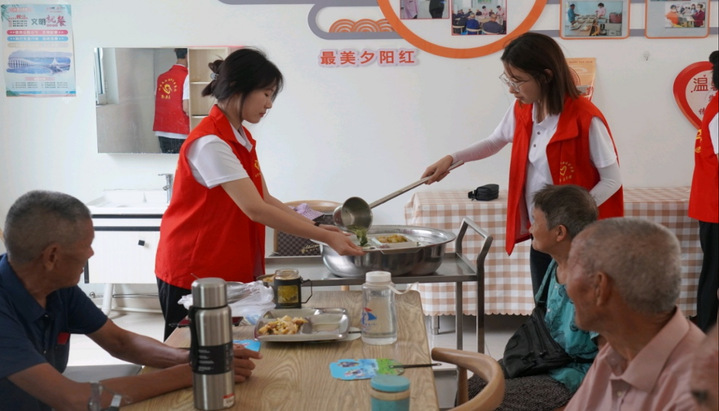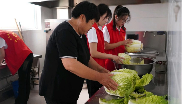 實踐團(tuán)于楊廟社區(qū)幸福食堂開展志愿服務(wù)。成員們分工協(xié)作,高效完成蔬菜清洗、食材切配等餐食準(zhǔn)備工作,保障食堂有序運轉(zhuǎn);餐時主動承擔(dān)分發(fā)任務(wù),重點為行動不便的老人提供送餐服務(wù),期間與老人們親切交流,關(guān)切詢問身體狀況與生活需求,讓食堂充盈溫情關(guān)懷,將服務(wù)切實送到老人身邊。