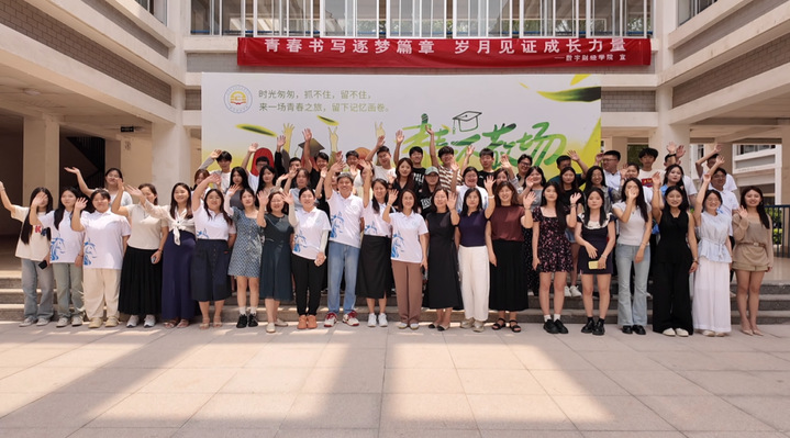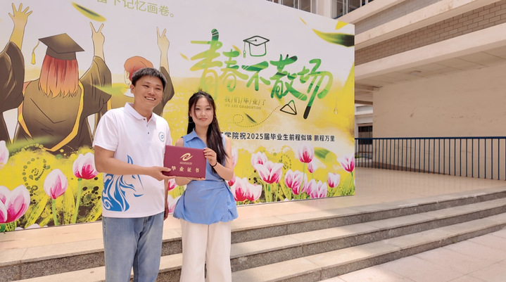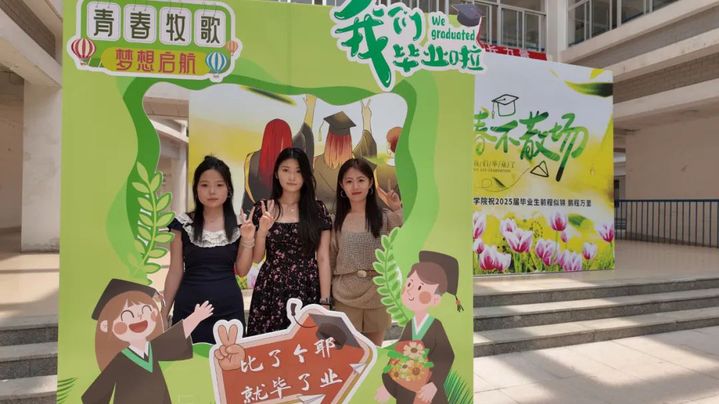 簽到處旁的照片打卡區(qū)熱鬧非凡,畢業(yè)生們與師長(zhǎng)相擁告別,與同窗合影留念,將母校的一草一木、一朝一夕都定格在記憶深處,是對(duì)時(shí)光的禮贊,將獨(dú)屬于我們的歲月鐫刻成心中難忘的印記。