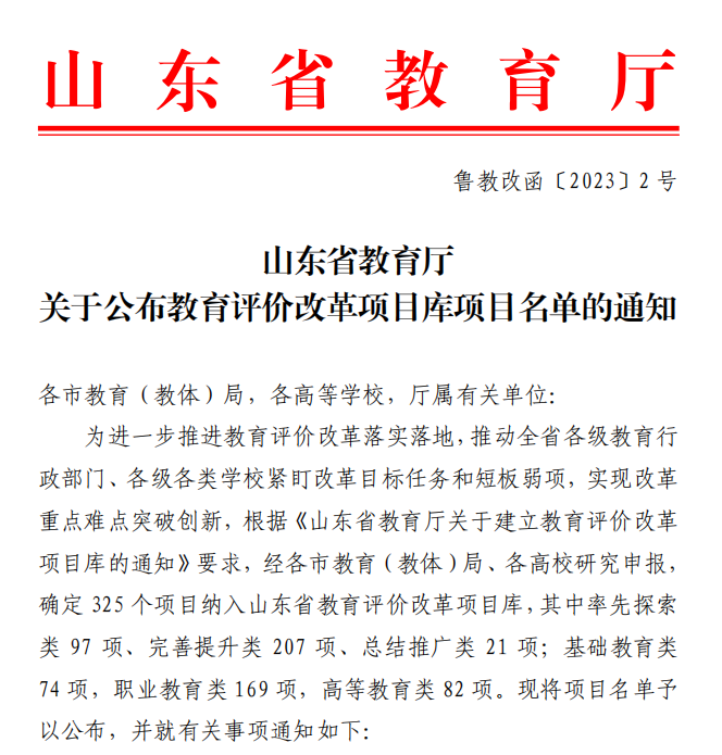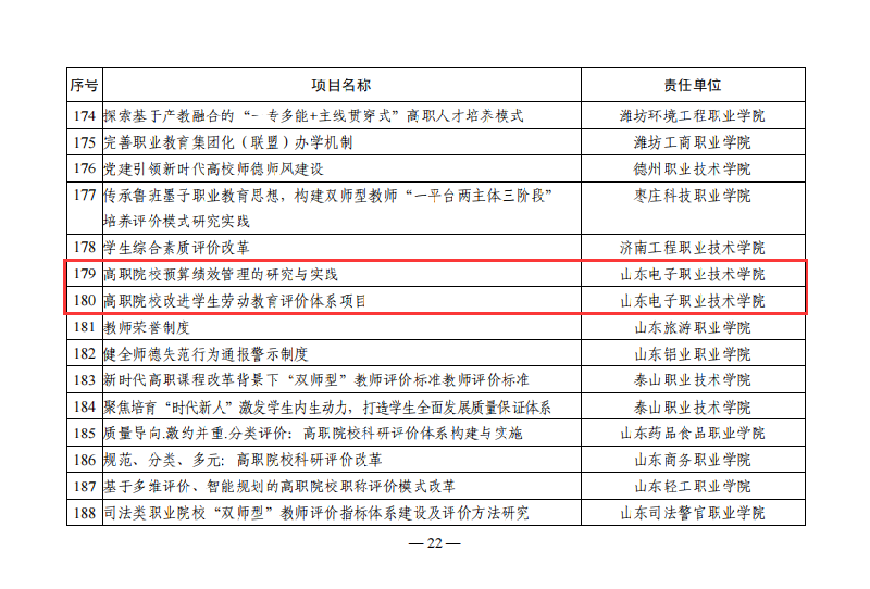 近日,山東省教育廳下發(fā)《關(guān)于公布教育評價改革項目庫項目名單的通知》,我校財務(wù)審計處申報的《高職院校預(yù)算績效管理的研究與實踐》、商務(wù)管理系申報的《高職院校改進學(xué)生勞動教育評價體系項目》成功入選教育評價改革項目庫。
