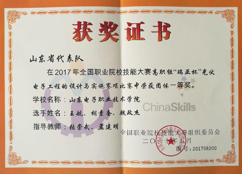 全國職業(yè)院校技能大賽高職組“瑞亞杯”光伏電子工程的設計與實施賽項一等獎