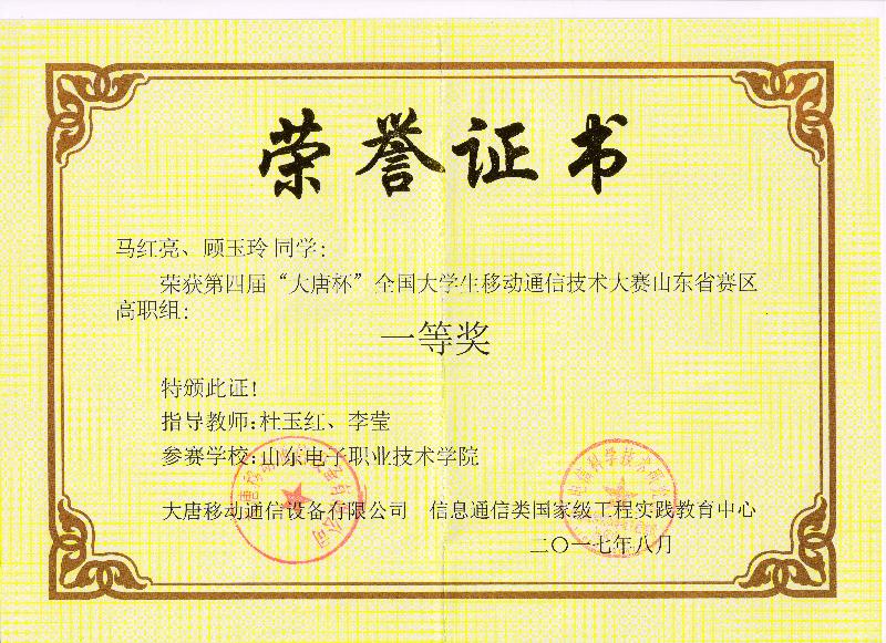 第四屆“大唐杯”全國高職院校大學(xué)生移動通信技術(shù)大賽全國總決賽一等獎