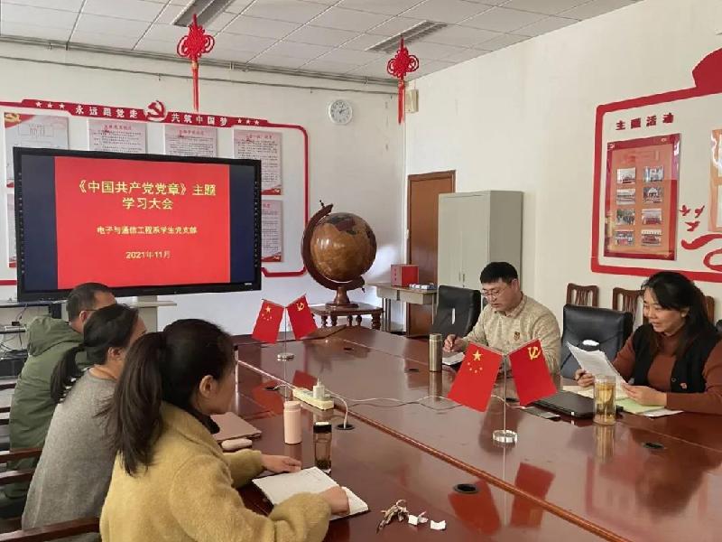 11月25日下午,電子與通信工程系學(xué)生黨支部在綜合樓216召開(kāi)《中國(guó)共產(chǎn)黨章程》主題學(xué)習(xí)會(huì)議,旨在強(qiáng)化黨員黨章意識(shí)、提高黨性修養(yǎng)。電子與通信工程系學(xué)生黨支部書(shū)記張穎靜在主持會(huì)議時(shí)強(qiáng)調(diào),認(rèn)真學(xué)習(xí)黨章、嚴(yán)格遵守黨章,是加強(qiáng)黨的建設(shè)的一項(xiàng)基礎(chǔ)性經(jīng)常性工作,也是全黨同志為黨工作、時(shí)刻牢記的應(yīng)盡義務(wù)和責(zé)任,對(duì)強(qiáng)化全黨黨章意識(shí),增強(qiáng)黨的創(chuàng)造力、凝聚力、戰(zhàn)斗力具有極為重要的作用。