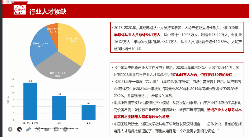 專家從集成電路產(chǎn)業(yè)背景、發(fā)展趨勢、產(chǎn)業(yè)鏈、崗位待遇、人才需求、知識儲備、職業(yè)發(fā)展規(guī)劃等方面進(jìn)行了深入、細(xì)致的解讀和分析。