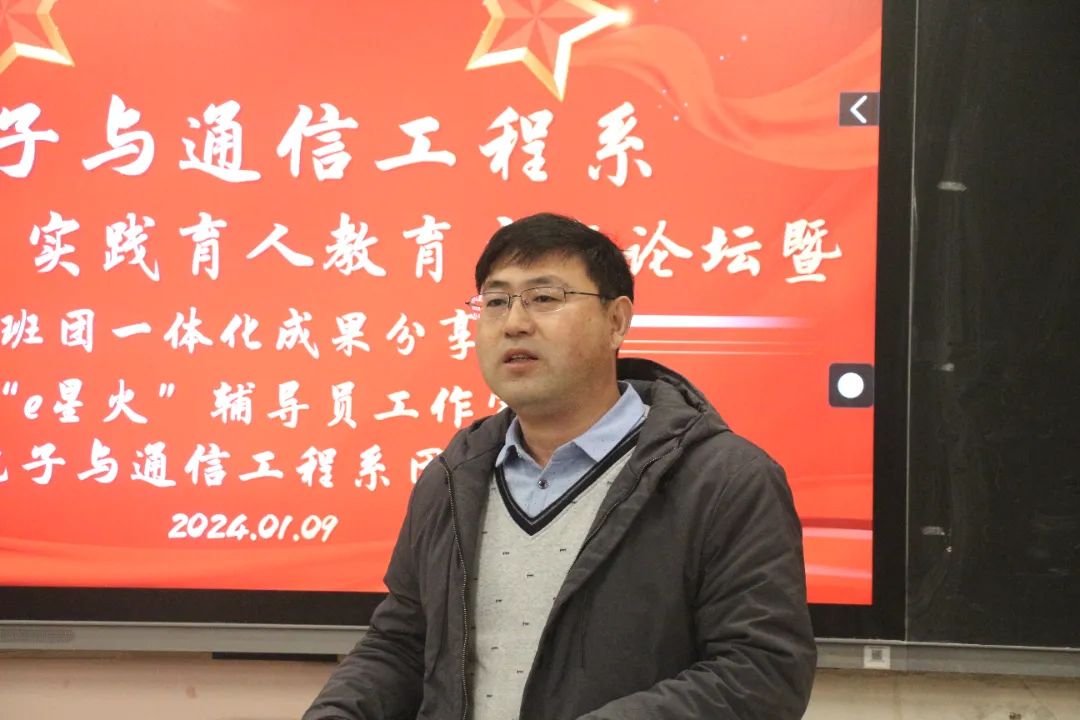 為凝聚育人合力,優(yōu)化育人環(huán)境,匯聚磅礴力量,增強班級凝聚力,展現(xiàn)各團支部風(fēng)采。電子與通信工程系于1月9日下午在1206教室開展“e星火”實踐育人主題論壇暨“班團一體化”成果分享會。黨總支副書記徐磊、全體輔導(dǎo)員與部分學(xué)生代表參加會議。