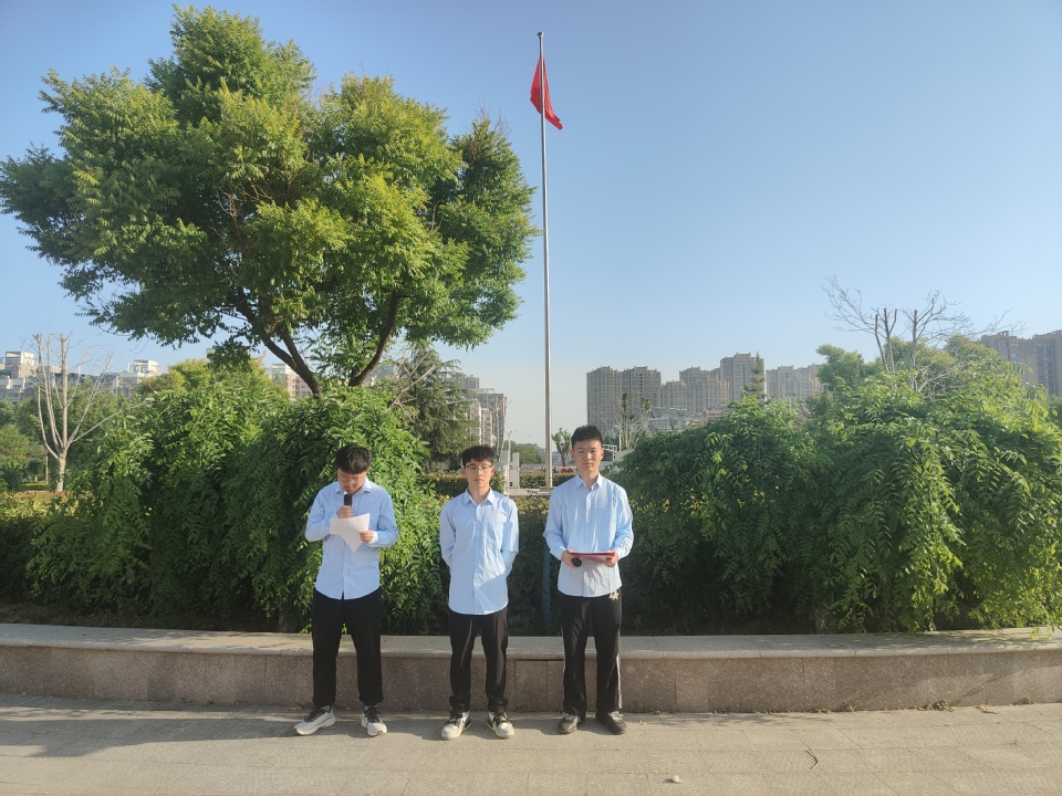 上午6點50分,主持人仵國慶宣布升旗儀式正式開始,國護隊的同學(xué)們邁著整齊劃一的步伐,護送著五星紅旗正步走向升旗臺。全體同學(xué)面向國旗行注目禮,高唱《義勇軍進行曲》。隨后宣誓人宋尚錕帶領(lǐng)全體同學(xué)莊嚴宣誓。升旗儀式最后,學(xué)生代表段金濤進行國旗下演講:要深刻理解并珍視生命安全的重要性,堅持“人民至上,生命至上”的原則,堅定維護人民群眾生命安全,立志成為有安全責(zé)任感、有擔(dān)當(dāng)、能面對困難、肯奮斗的新時代青年。