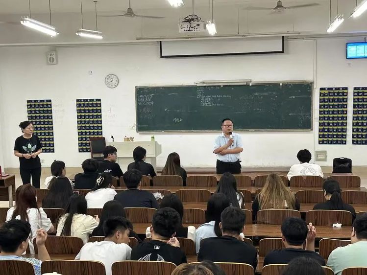 近日,集成電路學院院長郭隆建、團總支書記王寧在階梯一教室為城市軌道交通運營管理專業(yè)學生開展職業(yè)規(guī)劃教育。