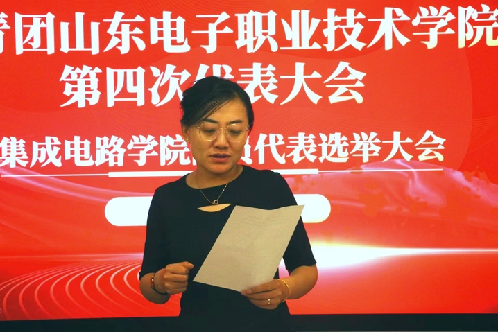 由王寧宣布本次選舉結(jié)果,現(xiàn)場公布集成電路學(xué)院代表團出席共青團山東電子職業(yè)技術(shù)學(xué)院第四次團員代表大會27名代表名單。
