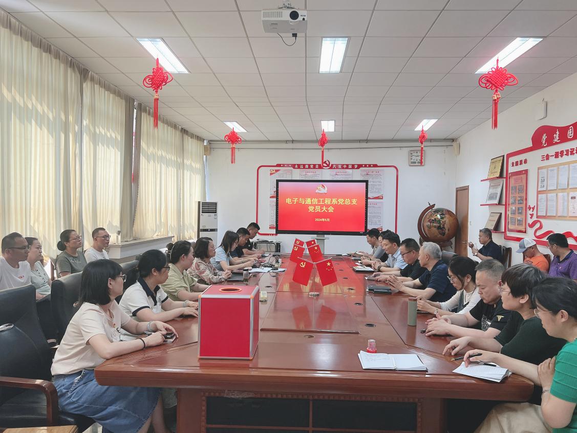 為進(jìn)一步加強黨的基層組織建設(shè),切實發(fā)揮黨組織的戰(zhàn)斗堡壘作用,根據(jù)《中國共產(chǎn)黨章程》和《中國共產(chǎn)黨普通高等學(xué)校基層組織工作條例》有關(guān)規(guī)定,經(jīng)學(xué)院黨委批準(zhǔn),2024年5月28日下午,電子與通信工程系黨總支調(diào)整補選工作在綜合樓216會議室召開,全體黨員參加,會議由郭隆健同志主持。