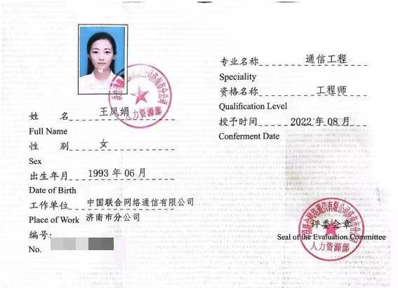 2019年,順利入職中國聯合網絡通信有限公司濟南分公司,在職期間工作認真,勇挑重擔,負責項目成績在全省排名靠前,多次參加各類比賽并多次獲獎,還在工作之余自學順利通過相關中級考試證書。