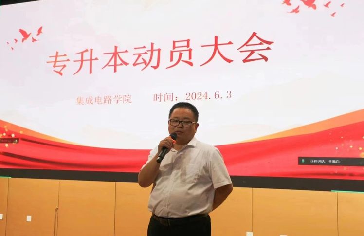 為做好專升本工作,提高專升本錄取比例,增加就業(yè)和發(fā)展的機(jī)會(huì),促進(jìn)同學(xué)們高質(zhì)量就業(yè),集成電路學(xué)院特此舉辦專升本動(dòng)員大會(huì)。出席本次會(huì)議的有黨總支書記郭隆健、團(tuán)總支書記王寧、輔導(dǎo)員段元興及全體在校生。