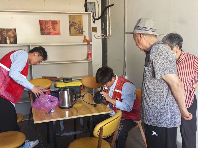 一位大娘拿著修好的電水壺,激動(dòng)地說:“服務(wù)隊(duì)每周都來,幫了我們大忙,真是太感謝了!”樸實(shí)的贊美是對服務(wù)隊(duì)最大的肯定。