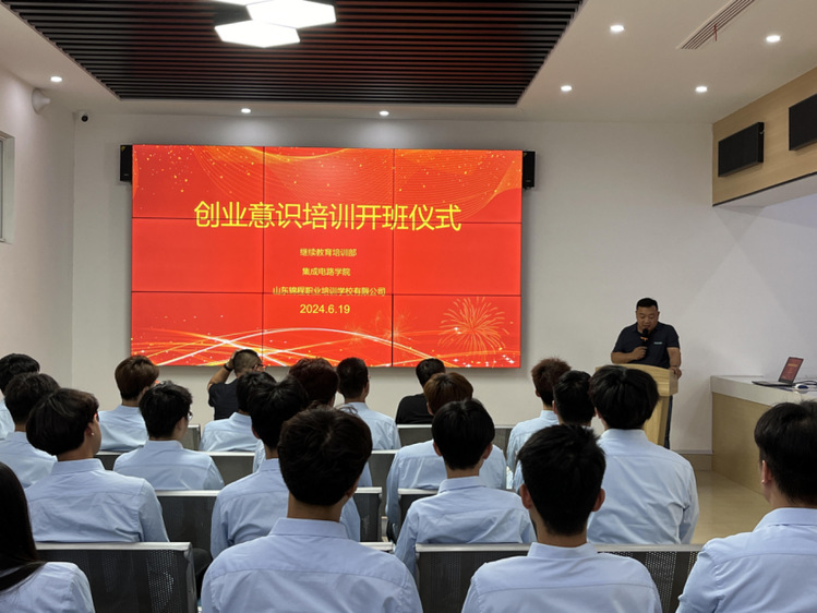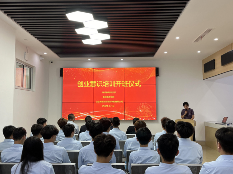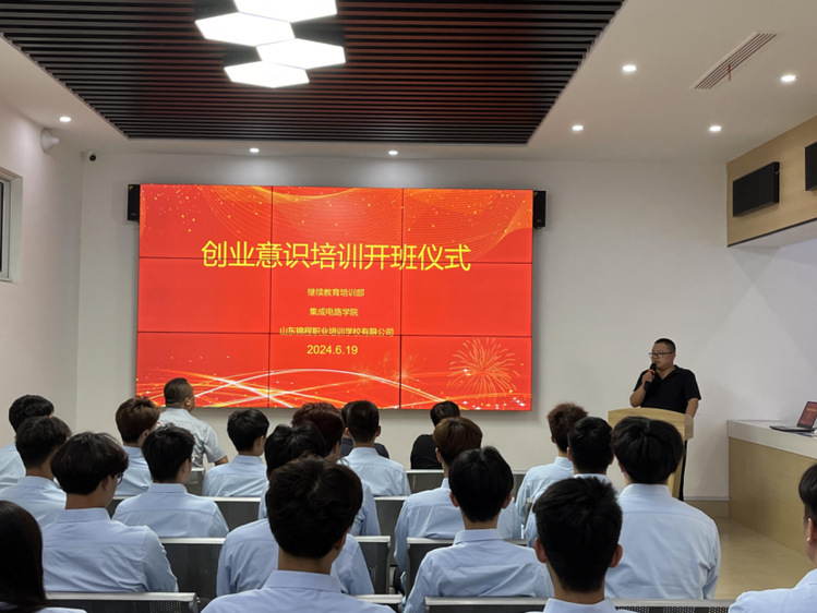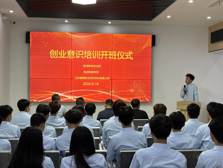 為幫助大學(xué)生增強創(chuàng)業(yè)意識,理清創(chuàng)業(yè)思路,學(xué)習(xí)創(chuàng)業(yè)技能,增強創(chuàng)業(yè)能力。近日,在繼續(xù)教育培訓(xùn)部的大力支持下,集成電路學(xué)院與山東錦程職業(yè)培訓(xùn)學(xué)校有限公司展開合作,并正式召開開班儀式,儀式由集成電路學(xué)院團總支書記王寧主持,繼續(xù)教育培訓(xùn)部主任王延武、集成電路學(xué)院黨總支書記郭隆健、山東錦程職業(yè)培訓(xùn)學(xué)校有限公司代表朱廣鵬和23級學(xué)生代表參加。