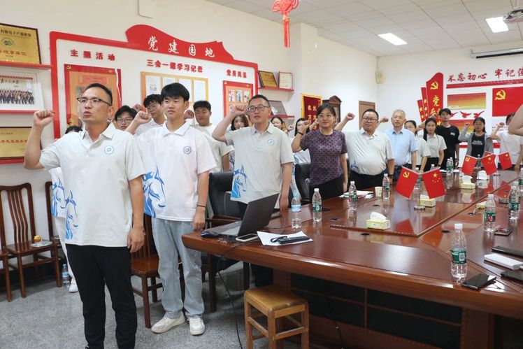 在會議室的黨旗前,陳旭帶領(lǐng)全體黨員重溫入黨誓詞。這一刻,每個人的心中都充滿了自豪與神圣,誓言聲聲,響徹云霄,回蕩在整個會議室里。