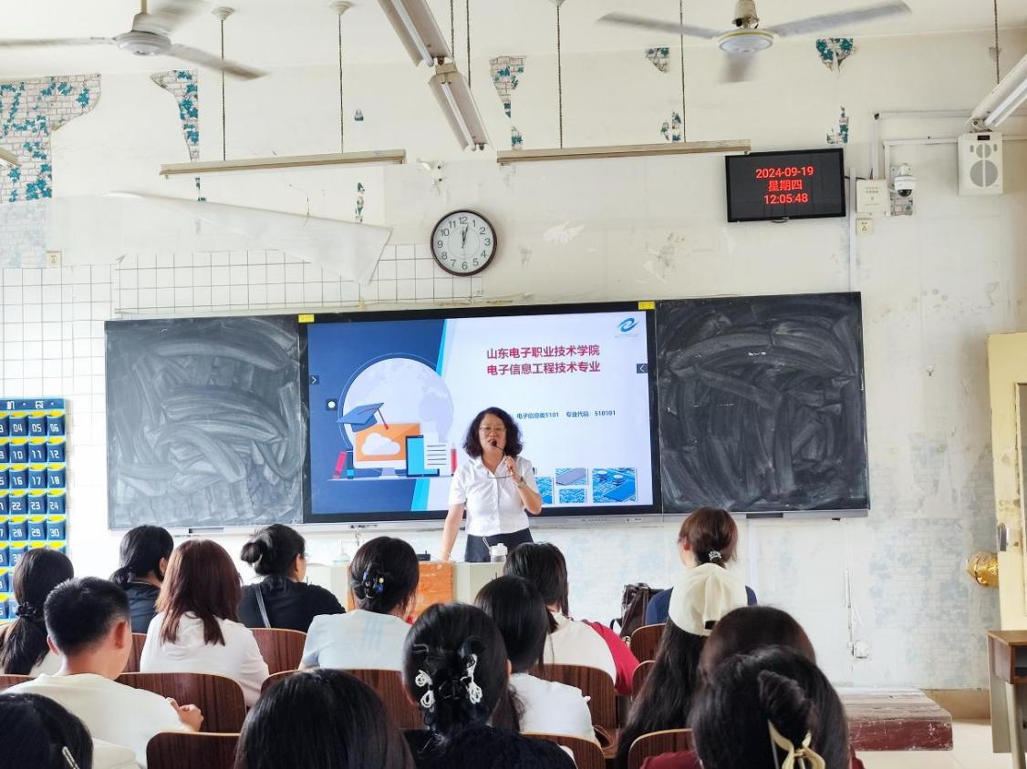 新生入學(xué)教育分為三部分進(jìn)行。首先由郭建勤老師重點(diǎn)介紹了山東電子職業(yè)技術(shù)學(xué)院和棗莊學(xué)院的學(xué)校情況、電子信息專業(yè)發(fā)展情況、師資隊(duì)伍配備以及專升本的轉(zhuǎn)段考試的特點(diǎn),并指出電子信息工程是緊扣國(guó)家需求,引領(lǐng)未來(lái)發(fā)展的重要學(xué)科,鼓勵(lì)學(xué)生端正學(xué)習(xí)態(tài)度,專注創(chuàng)新與實(shí)踐的結(jié)合,力求全面發(fā)展。