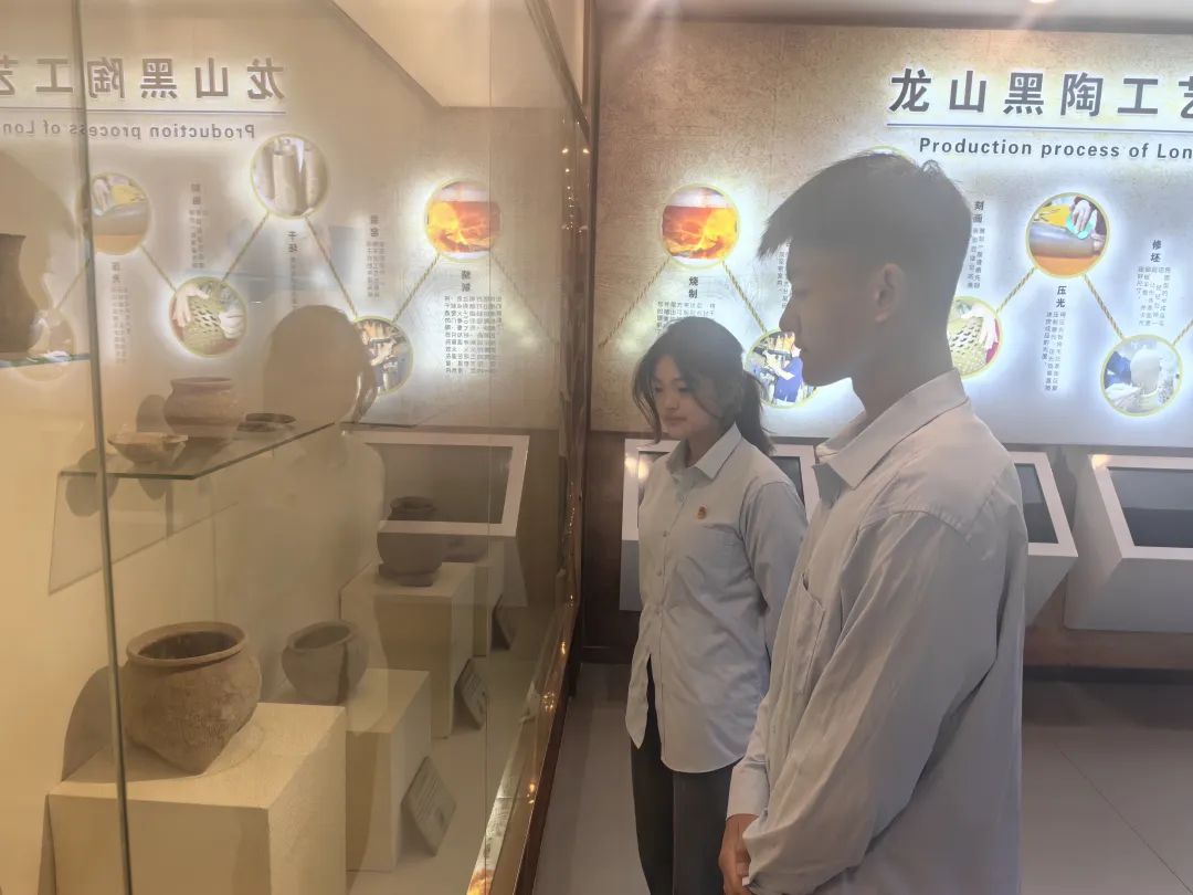 在講解員的生動講解下,學(xué)生骨干們了解到龍山文化是中國人第一次自主發(fā)現(xiàn)和第一個完全由中國人挖掘出土的文化,這一發(fā)現(xiàn)對于打破中國文化西來具有重要意義。參觀過程中,黑陶以其“黑如漆、亮如鏡、薄如殼、硬如瓷”的特點(diǎn),令大家驚嘆不已。講解員還分享了關(guān)于黑陶的歷史故事和制作工藝,進(jìn)一步加深了學(xué)生們對龍山文化的認(rèn)識和理解。
