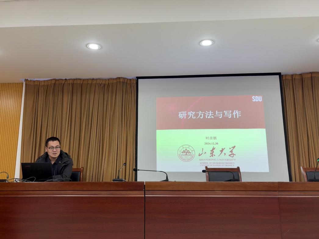 會(huì)上,山東大學(xué)集成電路學(xué)院副教授時(shí)彥朋作為特邀嘉賓,為大家?guī)?lái)了題為“研究方法與寫作”的專題分享。他從科研總體框架、高水平論文期刊的選擇與投稿流程,以及研究思路、方法和選題的確定等多個(gè)角度,深入剖析了撰寫高質(zhì)量論文的關(guān)鍵要素。
