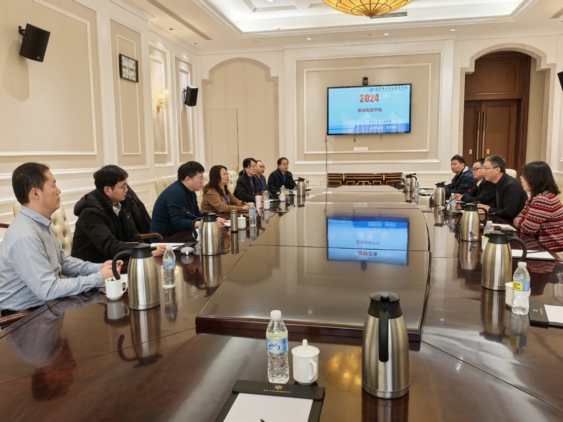 我校教務(wù)處、集成電路學(xué)院負(fù)責(zé)人及相關(guān)人員陪同交流。(集成電路 田延娟)