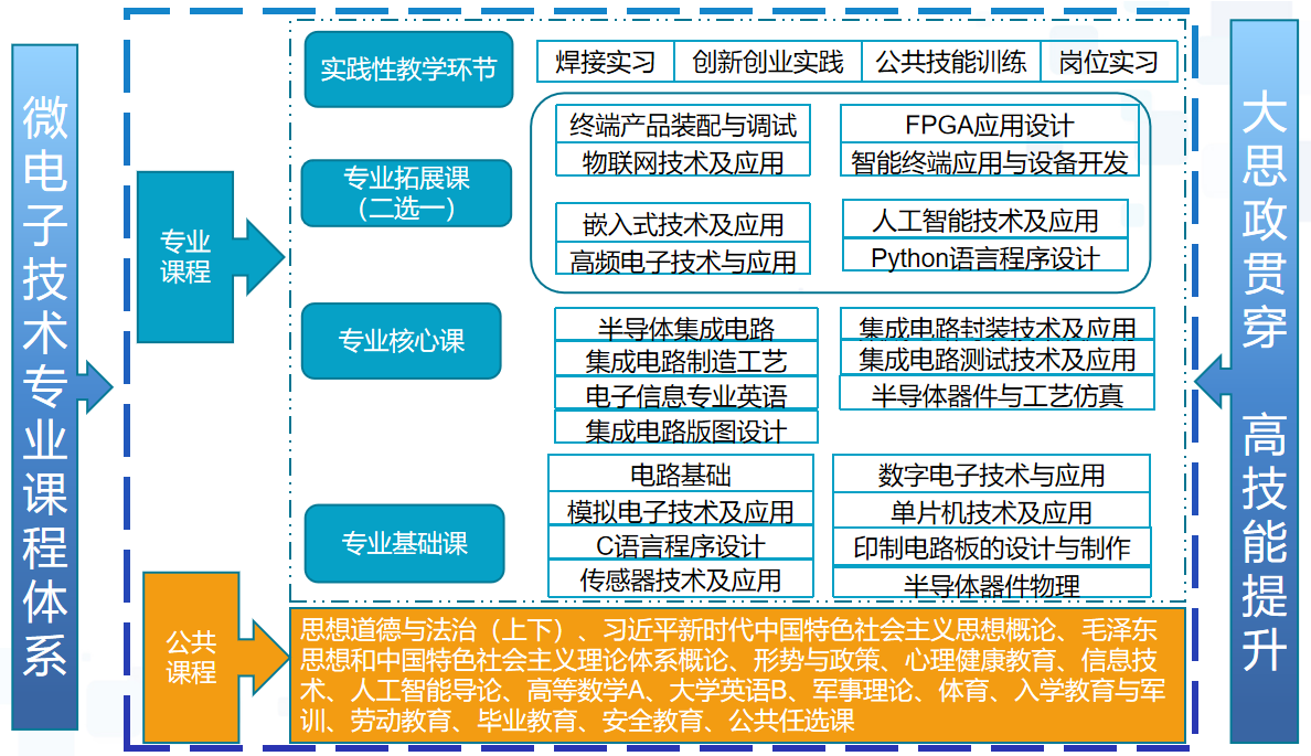 為適應(yīng)半導(dǎo)體產(chǎn)業(yè)高速發(fā)展與集成電路技術(shù)革新對(duì)芯片設(shè)計(jì)、制造工藝、封裝測(cè)試及設(shè)備運(yùn)維等領(lǐng)域的迫切需求,面向微電子行業(yè)高集成度、高性能、低功耗發(fā)展方向,本專業(yè)聚焦第三代半導(dǎo)體、先進(jìn)封裝、智能傳感器等新興領(lǐng)域,圍繞集成電路晶圓制造、集成電路封裝、集成電路測(cè)試等崗位群的核心能力要求,以服務(wù)集成電路產(chǎn)業(yè)國(guó)產(chǎn)化與高質(zhì)量發(fā)展為目標(biāo),深化專業(yè)內(nèi)涵建設(shè)與數(shù)字化升級(jí),推進(jìn)產(chǎn)教融合協(xié)同育人模式,著力培養(yǎng)具備扎實(shí)理論基礎(chǔ)、精湛技術(shù)技能和創(chuàng)新實(shí)踐能力的復(fù)合型高技能人才。