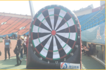 參賽隊(duì)員拿好“飛鏢”在投擲線后將“飛鏢”投擲到靶盤(pán)上,投擲到幾分即可獲得幾分,如出現(xiàn)器材同時(shí)壓在兩個(gè)分?jǐn)?shù)的情況,采用記高分原則。每人投擲5次,以最高成績(jī)計(jì)分。投擲線距離器械6米。