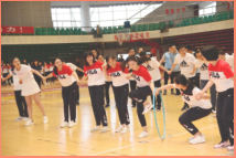 8名參賽隊(duì)員手拉手站成1排傳遞呼啦圈,每次只能傳遞1個(gè),1個(gè)傳遞完畢再傳遞另一個(gè),每隊(duì)需傳遞3個(gè)呼啦圈。用時(shí)少者名次列前。注:比賽過(guò)程中隊(duì)員之間手不能松開(kāi)。