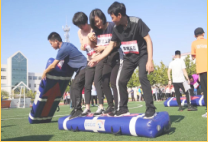 4名參賽者通過(guò)交替兩個(gè)充氣筏向前行進(jìn),賽程20米,參賽隊(duì)員除雙手外的其他身體任何部位不得落地。用時(shí)少者名次列前。
