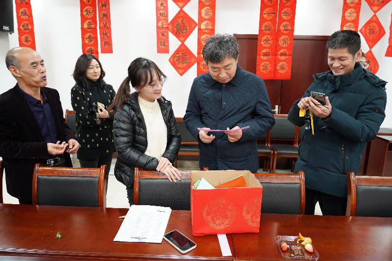 12月30日下午,行政大組辦公樓222會議室,布置猜燈謎現(xiàn)場,全場共有243個(gè)燈迷共大家隨機(jī)抽取回答,借此弘揚(yáng)我國民族文化,以語言平實(shí)精煉、雅俗共賞、飽含哲理的燈謎,為即將到來的元旦增添節(jié)日氣氛。現(xiàn)場還同步展出了老師們的春聯(lián)和福字作品,老師們互相欣賞、點(diǎn)評,現(xiàn)場氣氛和樂融融。(行政大組 鄭清一)