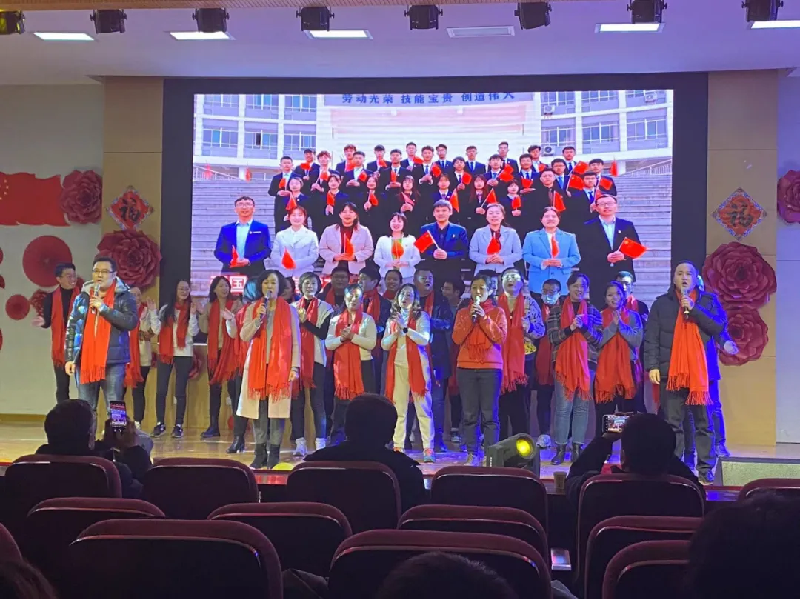 此次晚會形式多樣,有不少精彩、富有寓意的節(jié)目,給大家留下了深刻的印象,晚會現(xiàn)場充滿了歡聲笑語。一個個精彩的節(jié)目引得現(xiàn)場觀眾掌聲連連。當商務(wù)管理系黨政干部帶領(lǐng)全體教師登臺演唱《真心英雄》,把晚會推向高潮。