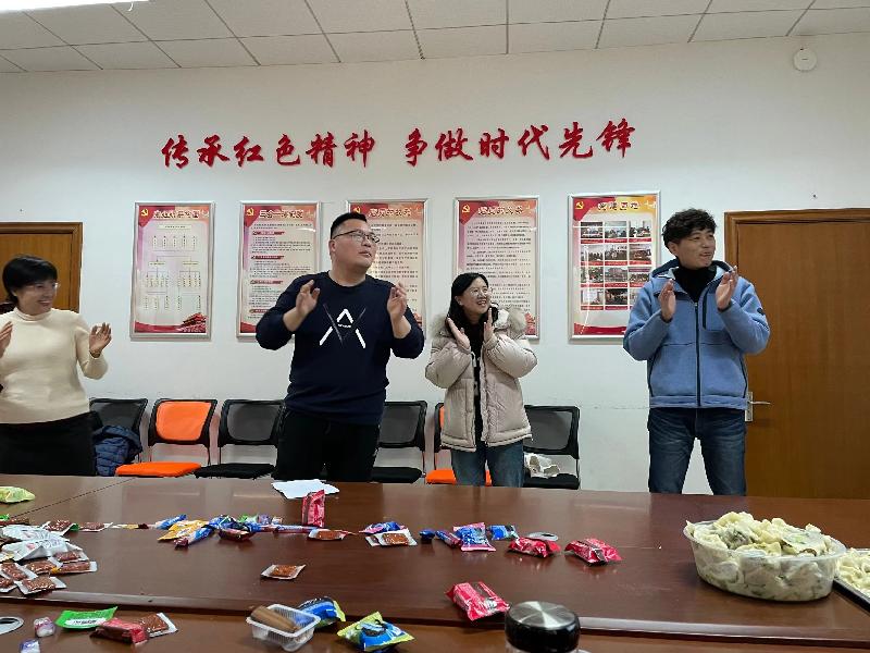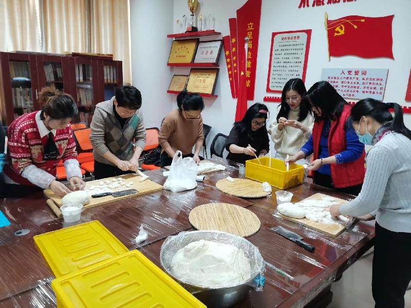 上午十點半,在財經(jīng)金融系主任董紅的帶領(lǐng)下,老師們開始了元旦包水餃活動。
