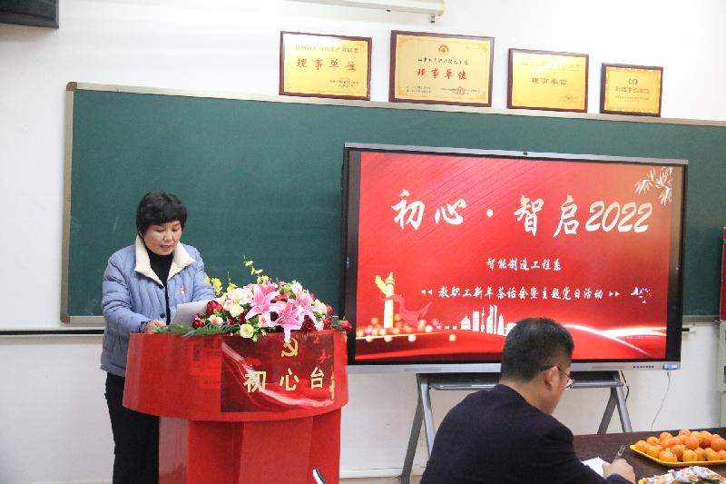 為進(jìn)一步學(xué)習(xí)貫徹黨的十九屆六中全會精神,積極構(gòu)建和諧校園文化,活躍教職工文化生活,加強團(tuán)結(jié)、增進(jìn)友誼、凝聚力量,12月21日下午智能制造工程系在辦公圖書樓201室開展“初心·智啟2022”教職工新年茶話會暨主題黨日活動。副院長孟翠萍出席了活動,同大家一起回望初心,迎接新的一年。活動在回顧2021年系部精彩視頻中拉開帷幕,系副主任王紅發(fā)表新年致辭,簡要總結(jié)回顧全系一年的重點工作,提出新一年的發(fā)展思路作出展望。隨后系干部和五名教師代表一一走向“初心臺”,用樸實的承諾,表達(dá)自己作為一名共產(chǎn)黨員、一名教師的初心,講述自己平凡生涯里的使命故事,表白充滿希望的2022年。孟翠萍院長在講話中肯定了系部一年中取得的成績,也深受老師們講述的感動,分享了她本人從教37年的經(jīng)歷,回望初心,講述其與電院同呼吸共命運的點點滴滴,活動現(xiàn)場洋溢著一股愛的暖流。最后全體黨員齊唱《我宣誓》,表達(dá)對黨的忠誠,踐行初心。活動中還開展了趣味黨史答題、“心有靈犀”互動小游戲等,老師們在輕松愉悅的氣氛中收獲知識、感恩溫暖、放飛心情,攜手并進(jìn),告別2021,用智慧開啟2022,一同奔赴新一年的熱愛。(智能制造工程系 高霞)