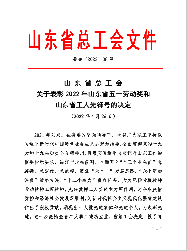 五一國際勞動節(jié)前夕,山東省總工會下發(fā)《關于表彰2022年山東省五一勞動獎和山東省工人先鋒號的決定》(魯會〔2022〕38號)文件,對獲得2022年山東省五一勞動獎和山東省工人先鋒號的集體和個人進行了表彰,我校張欣同志被授予山東省五一勞動獎章。