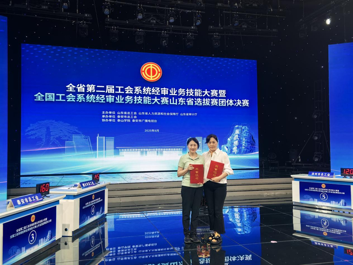 近日,山東省第二屆工會系統(tǒng)經(jīng)審業(yè)務(wù)技能大賽暨全國工會系統(tǒng)經(jīng)審業(yè)務(wù)技能大賽山東省選拔賽在泰安舉行。本次大賽由山東省總工會、省人力資源社會保障廳、省審計廳聯(lián)合舉辦,我校教職工徐怡旻、盧新芳在比賽中表現(xiàn)優(yōu)異,榮獲佳績。