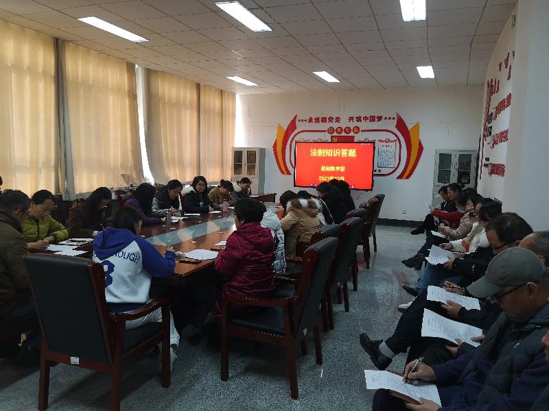 12月是第五個(gè)山東省法治宣傳教育月,為積極開展國(guó)家法治宣傳活動(dòng),12月14日中午基礎(chǔ)教學(xué)部在綜合樓414舉辦法治知識(shí)答題活動(dòng),全體教職工參加。