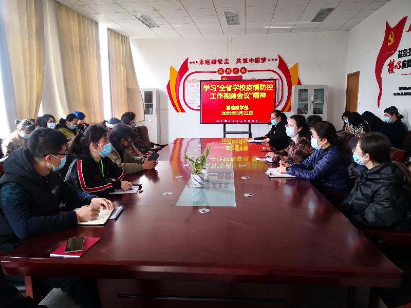 3月22日下午1:50基礎(chǔ)教學(xué)部在綜合樓414召開部門工作會(huì)議,學(xué)習(xí)貫徹“全省學(xué)校疫情防控工作視頻會(huì)議”精神及學(xué)校有關(guān)疫情防控要求,全體教職工參加。