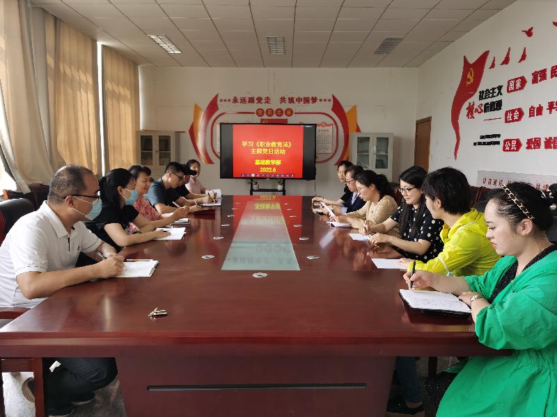 6月14日下午,基礎(chǔ)教學(xué)部黨支部組織黨員學(xué)習(xí)新修訂的《中華人民共和國(guó)職業(yè)教育法》。本次學(xué)習(xí)由黨支部書記張欣主持,組織委員孫艷婷主講。