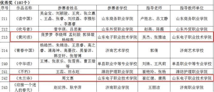 誦讀古今經(jīng)典,傳承優(yōu)秀文化。近日,我校在山東省教育廳暨山東省語(yǔ)言文字工作委員會(huì)舉辦的“2023年山東省中華經(jīng)典誦讀大賽”中獲得佳績(jī):康燕、崔紅健指導(dǎo),李曉輝誦讀的《豐碑》獲得三等獎(jiǎng);吳杰、張雅迪指導(dǎo),龐夢(mèng)夢(mèng)、李曉輝、孟釗毅、郭懌璇、楊柳燕誦讀的《黃河頌》和崔紅健、康燕指導(dǎo),周文惠誦讀的《木蘭詩(shī)》獲得優(yōu)秀獎(jiǎng),我校推選的三個(gè)作品均獲得獎(jiǎng)項(xiàng),是我校始終堅(jiān)持傳承中華優(yōu)秀傳統(tǒng)文化,將文化育人、美育育人貫穿人才培養(yǎng)全過(guò)程的成果。