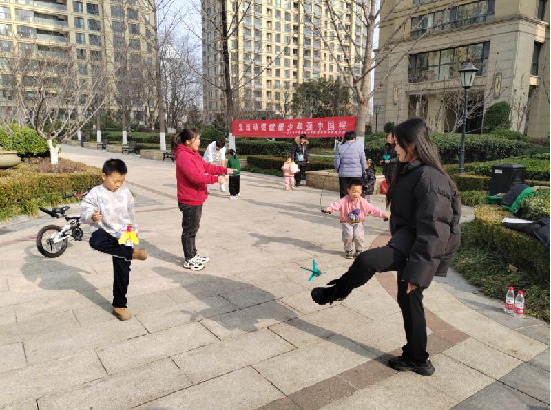 隨后,徐老師和排球社團(tuán)骨干成員向現(xiàn)場(chǎng)的小朋友們介紹了排球墊球的技術(shù)要領(lǐng),小朋友們求知若渴,學(xué)習(xí)興趣高漲,很快掌握了墊球的基本技術(shù),運(yùn)動(dòng)興趣的種子從此刻開(kāi)始萌芽。除了學(xué)習(xí)墊球外,還帶領(lǐng)小朋友們練習(xí)了跳繩和踢毽子,在活動(dòng)中增強(qiáng)了體質(zhì),以實(shí)際行動(dòng)踐行了“少年強(qiáng)則中國(guó)強(qiáng)”的錚錚誓言。