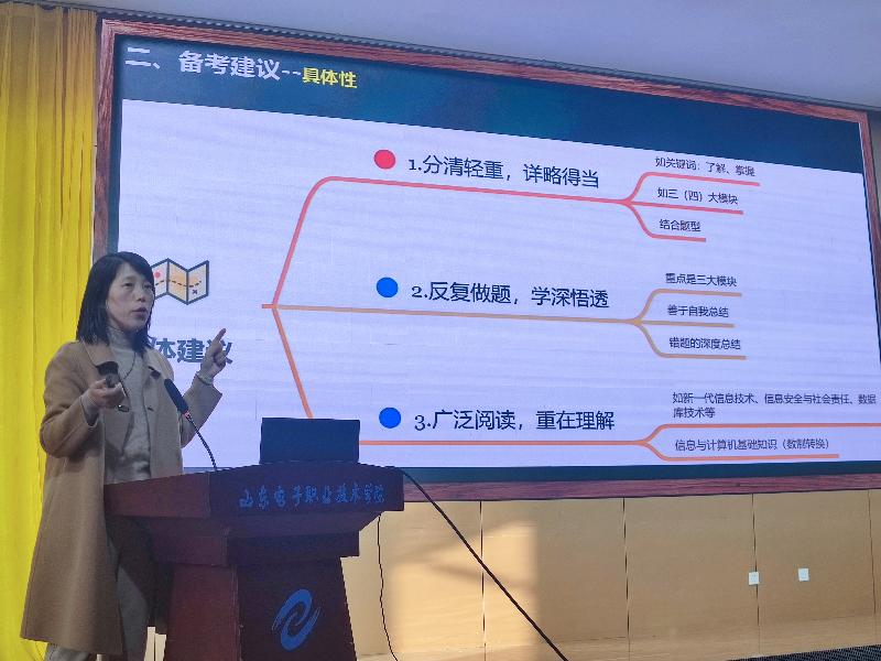 為更好地幫助山電學(xué)子提高升本認(rèn)知、了解升本政策、明確復(fù)習(xí)規(guī)劃。12月8日下午,“山東省2024年專(zhuān)升本考試要求”專(zhuān)題講座在學(xué)術(shù)報(bào)告廳順利開(kāi)展,此次講座由基礎(chǔ)教學(xué)部康燕、張書(shū)玲、程愛(ài)朋和計(jì)算機(jī)與軟件工程系陳雙主講,為同學(xué)們?cè)敿?xì)解讀了各科目的考試要求及備考策略、答題技巧,2022、2023級(jí)有300余名學(xué)生積極參與。會(huì)議由基礎(chǔ)教學(xué)部教學(xué)科長(zhǎng)孫艷婷主持。 孫艷婷首先對(duì)專(zhuān)升本政策進(jìn)行了解讀,她指出專(zhuān)升本考試是高職院校學(xué)生繼續(xù)深造的重要途徑,對(duì)于提高學(xué)生的綜合素質(zhì)和就業(yè)競(jìng)爭(zhēng)力具有重要意義。她主要介紹了考試科目、報(bào)名條件、錄取規(guī)則等方面的內(nèi)容,特別是2024年專(zhuān)升本考試的政策變化,讓學(xué)生對(duì)專(zhuān)升本考試有了更全面的了解。數(shù)學(xué)、英語(yǔ)、語(yǔ)文、計(jì)算機(jī)科目的主講老師進(jìn)行了相關(guān)科目的考試要求、備考策略、答題技巧的分享。老師們結(jié)合歷年真題,詳細(xì)講解了各科目的考試重點(diǎn)和難點(diǎn),強(qiáng)調(diào)在備考過(guò)程中要注重基礎(chǔ)知識(shí)的學(xué)習(xí),提高解題能力,同時(shí)要注重實(shí)踐操作能力及思維能力的培養(yǎng)。 現(xiàn)場(chǎng)氣氛熱烈融洽,學(xué)生們積極提問(wèn)、認(rèn)真記錄。在答疑環(huán)節(jié),老師們對(duì)學(xué)生的問(wèn)題進(jìn)行了一一解答,并給予了針對(duì)性的備考建議。同學(xué)們表示,此次講座幫助自己明晰了專(zhuān)升本考試要求和政策,收獲了實(shí)用的備考策略和答題技巧,更加堅(jiān)定學(xué)習(xí)目標(biāo)和方向,將做好詳細(xì)規(guī)劃,把握機(jī)遇,爭(zhēng)取在專(zhuān)升本考試中實(shí)現(xiàn)自我突破。(基礎(chǔ)教學(xué)部 康燕)