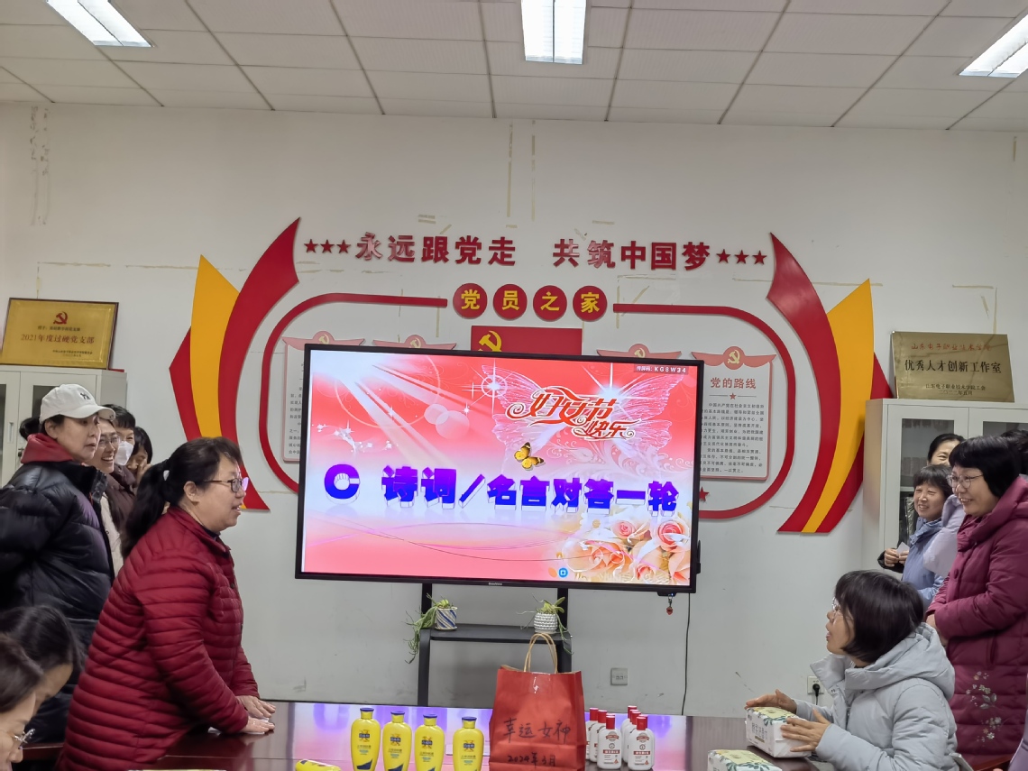 桃李不言,下自成蹊。對(duì)奮戰(zhàn)在教學(xué)一線,默默付出的教師們,張欣主任表達(dá)了節(jié)日的問(wèn)候和溫馨的祝福,希望老師們以健康的姿態(tài)、美好的心情對(duì)待工作生活的每一天。隨后,活動(dòng)正式拉開(kāi)帷幕。部門(mén)根據(jù)女教師身體特點(diǎn)及心理特征,精心設(shè)計(jì)了趣味游戲,引導(dǎo)女教師在活動(dòng)中鍛煉身體、排解壓力、增進(jìn)友誼、加深感情。根據(jù)抽簽順序,老師們依次進(jìn)行“沙包投擲”,大家手持沙包,目光銳利,躍躍欲試,精準(zhǔn)地投向擺成“心”形的信封。信封中裝有從A到D的不同字母,每個(gè)字母對(duì)應(yīng)著不同的游戲項(xiàng)目,沙包準(zhǔn)確投向信封,根據(jù)屏幕上相應(yīng)的文字,如“詩(shī)詞對(duì)答”“秀出風(fēng)采”等,教師們對(duì)答詩(shī)詞,或歌或舞,或說(shuō)或演,用自己的方式表達(dá)著對(duì)節(jié)日的祝福。大家熱情高漲,笑聲不斷,掌聲雷動(dòng),整個(gè)活動(dòng)過(guò)程富有創(chuàng)意又妙趣橫生。