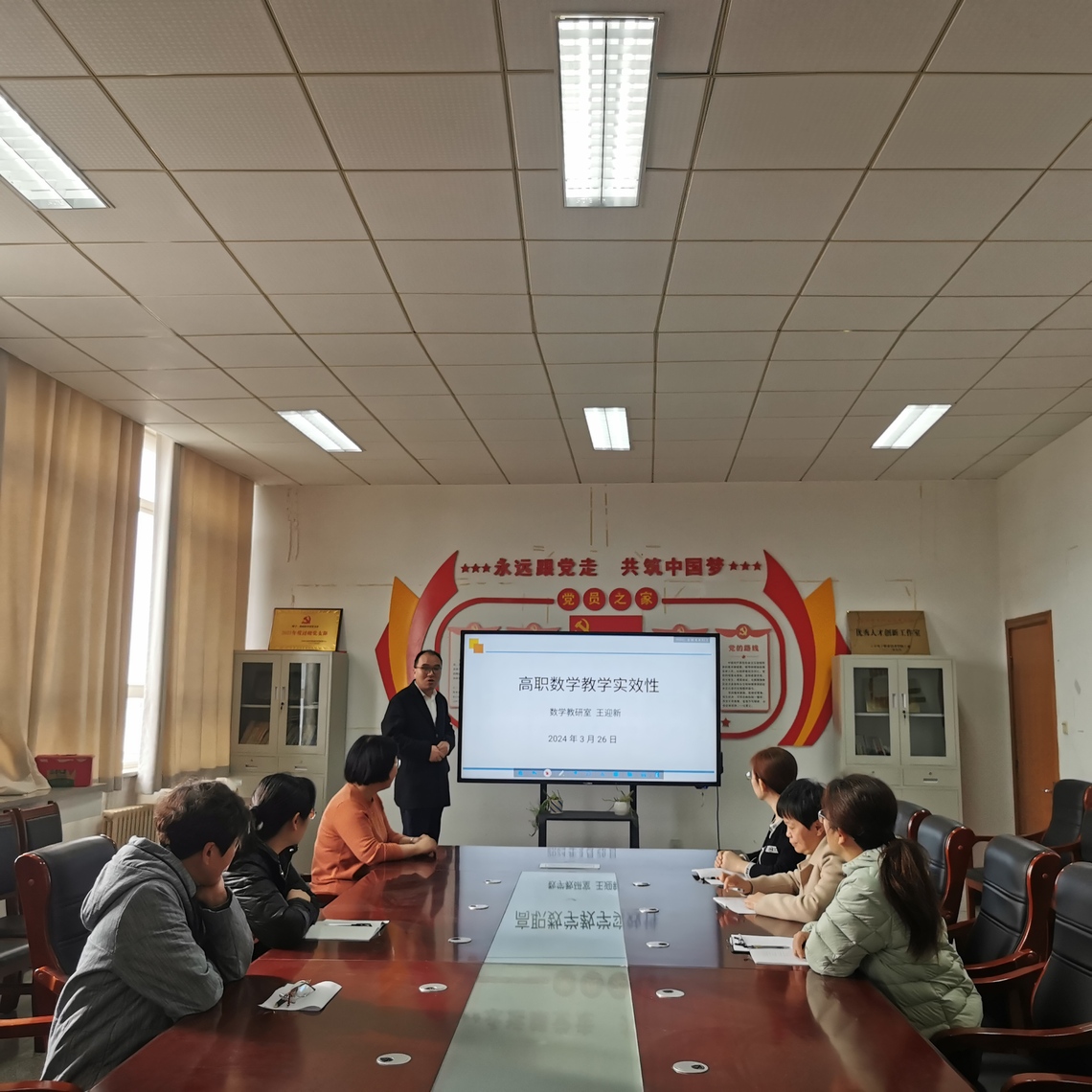為了促進高職數(shù)學類課程教學質量的提升,3月26日下午,基礎教學部數(shù)學教研室在綜合樓414會議室舉行主題為“高職數(shù)學教學實效性”的集體教研活動,本次教研活動由王迎新主持,教研室全體教師參加。