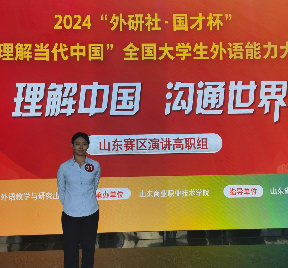 11月2日,2024“外研社·國才杯”“理解當代中國”全國大學生外語能力演講大賽山東賽區(qū)復賽在山東商業(yè)職業(yè)技術學院舉行,我校王嘉馨同學喜獲銀獎。這是我校學生在“外研社·國才杯”“理解當代中國”全國大學生外語能力大賽系列比賽中取得的又一佳績。