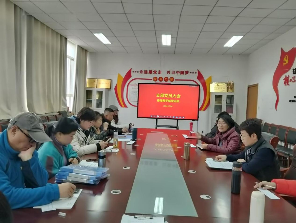 按照學院黨委《關(guān)于開展2024年度黨建工作考核的通知》要求,12月24日,基礎(chǔ)教學部黨支部召開全體黨員大會,大會將學習習近平總書記12月16日在紀念喬石同志誕辰100周年座談會上的重要講話列為“第一議題”,黨支部書記任文娟就履行全面從嚴治黨責任和抓基層黨建工作向大會進行了述職,支部全體黨員對支部工作進行了民主評議。