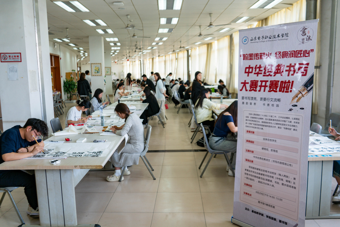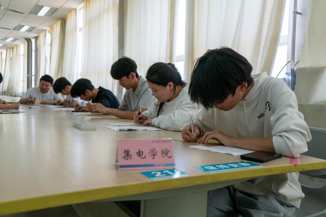 為弘揚(yáng)中華優(yōu)秀傳統(tǒng)文化,提升學(xué)生漢字書寫技能與審美素養(yǎng),營(yíng)造書香校園氛圍,4月29日,由我校基礎(chǔ)教學(xué)部主辦、團(tuán)委協(xié)辦的中華經(jīng)典書寫大賽在圖書館正式啟動(dòng)。活動(dòng)以翰墨傳薪火,經(jīng)典潤(rùn)匠心為主題,百余名師生齊聚現(xiàn)場(chǎng),選手們以筆為媒,將詩(shī)詞經(jīng)典凝為墨痕心跡,于橫豎撇捺間書寫文化自信,在提按轉(zhuǎn)折中傳承民族精魂。