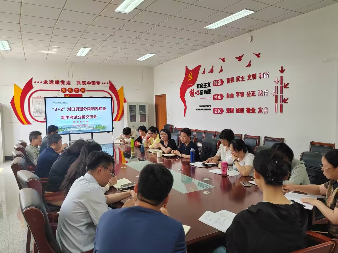 為全面總結(jié)“3+2” 對(duì)口貫通分段培養(yǎng)專(zhuān)業(yè)公共基礎(chǔ)課教學(xué)成效,精準(zhǔn)剖析學(xué)生在大學(xué)英語(yǔ)和高等數(shù)學(xué)課程中的學(xué)習(xí)情況,5 月 27 日下午,結(jié)合前期期中考試情況,基礎(chǔ)教學(xué)部組織召開(kāi)“3+2” 對(duì)口貫通分段培養(yǎng)專(zhuān)業(yè)考試成績(jī)分析交流會(huì)。基礎(chǔ)教學(xué)部教學(xué)干部、各系團(tuán)總支書(shū)記、專(zhuān)本貫通班基礎(chǔ)課任課教師及輔導(dǎo)員參加會(huì)議。
