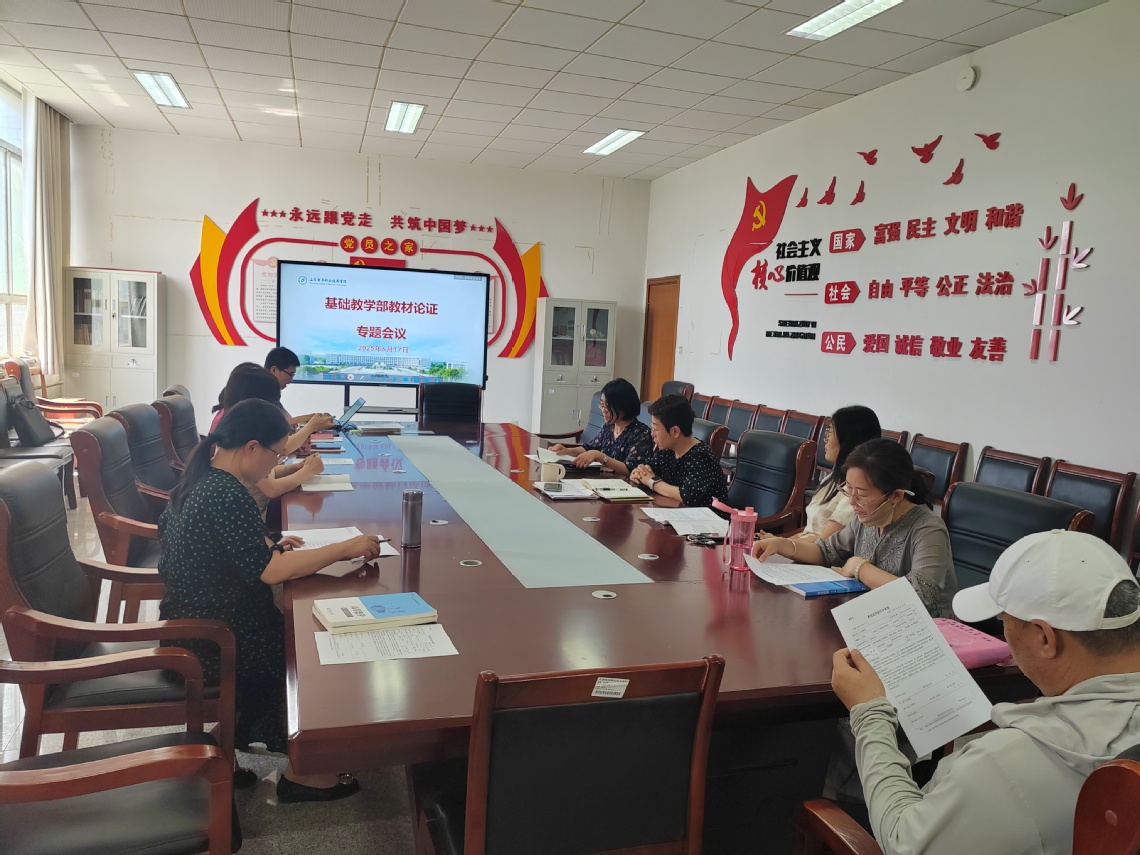 為進(jìn)一步優(yōu)化教材配置,提升教學(xué)質(zhì)量,根據(jù)教育廳印發(fā)的《關(guān)于加強(qiáng)職業(yè)院校教材管理工作的通知》(魯教職字〔2021〕1號)和學(xué)校《山東電子職業(yè)技術(shù)學(xué)院教材管理辦法》(魯電職院教字〔2024〕35 號)要求,6月17日下午,基礎(chǔ)教學(xué)部組織召開了2025-2026學(xué)年教材選用論證會,基礎(chǔ)部教學(xué)部學(xué)術(shù)委員會全體成員參加會議。