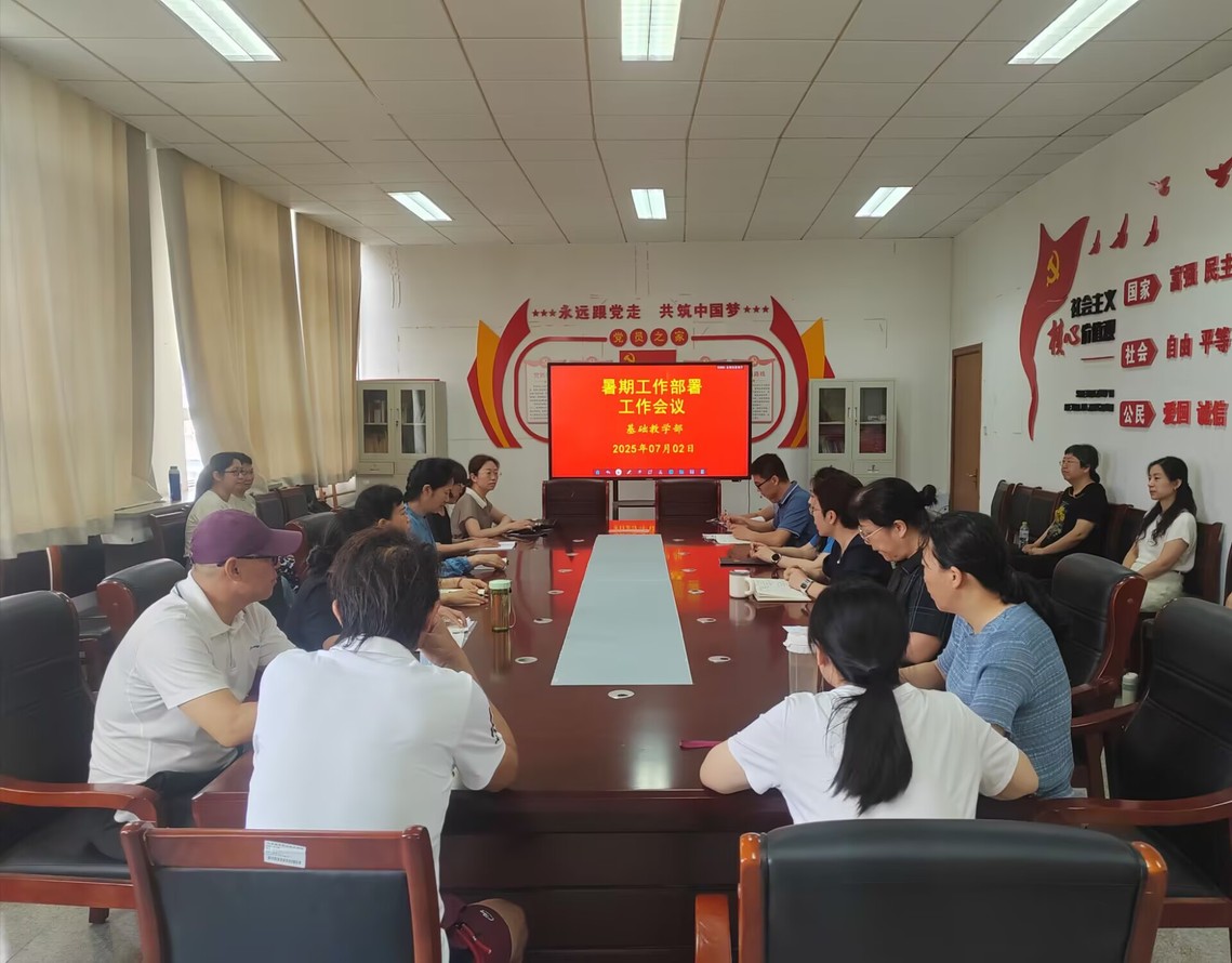 為全面總結(jié)本學(xué)期工作,系統(tǒng)規(guī)劃部署暑期重點(diǎn)工作,基礎(chǔ)教學(xué)部于7月2日在綜合樓414會(huì)議室召開暑期工作部署會(huì)議。會(huì)議由基礎(chǔ)教學(xué)部副主任李霞主持,全體教師參會(huì)。