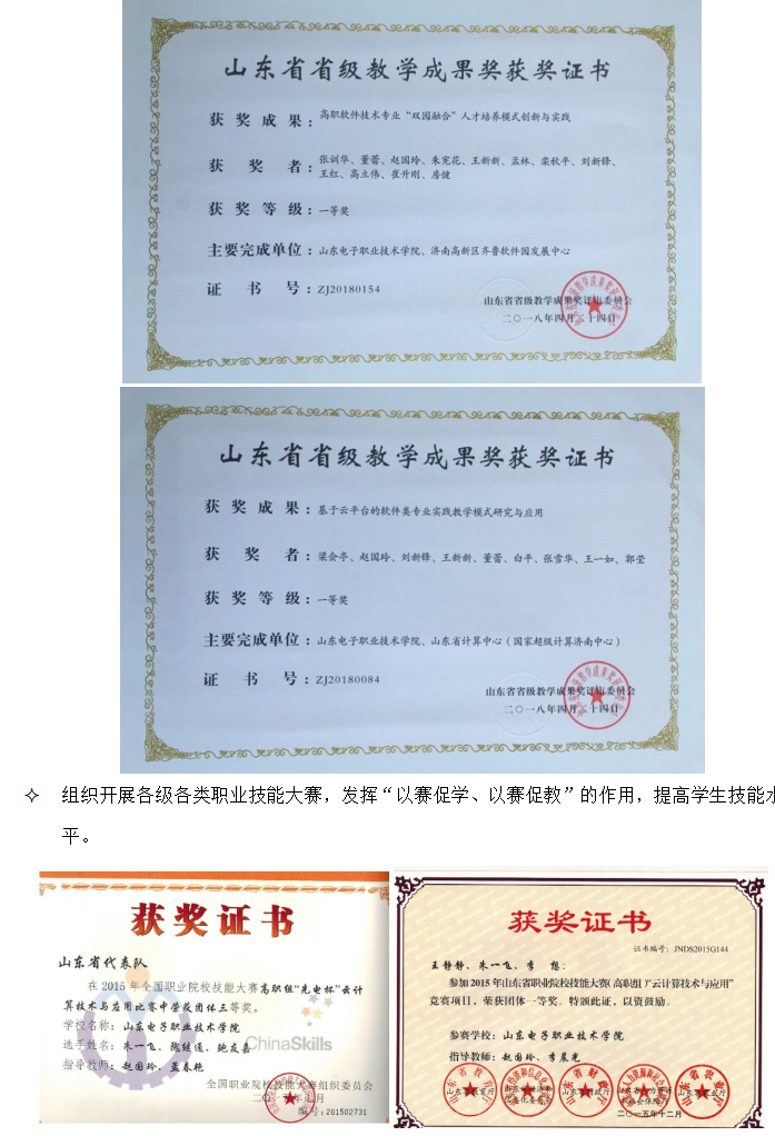 專(zhuān)任教師團(tuán)隊(duì)中獲信息系統(tǒng)項(xiàng)目管理師、軟件設(shè)計(jì)師、云計(jì)算技術(shù)與應(yīng)用等高級(jí)職業(yè)資格證書(shū)6人,教師團(tuán)隊(duì)成員均為“雙師型”教師。