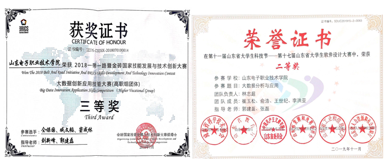 大數(shù)據(jù)技術(shù)專業(yè)致力于創(chuàng)新應(yīng)用型大數(shù)據(jù)人才的培養(yǎng),不斷提高人才培養(yǎng)質(zhì)量,在人才培養(yǎng)方面取得了豐碩的成果。學(xué)生在國家級、省級大數(shù)據(jù)技能競賽、創(chuàng)新創(chuàng)業(yè)競賽中屢獲佳績,成果豐碩,主要如下: