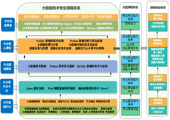 大數(shù)據(jù)技術(shù)專業(yè)以立德樹人為根本任務(wù),面向新一代信息技術(shù)產(chǎn)業(yè)及各類企事業(yè)單位的大數(shù)據(jù)管理與應(yīng)用領(lǐng)域,培養(yǎng)擁護黨的基本路線,具備扎實的思想政治理論素養(yǎng),掌握大數(shù)據(jù)基本理論、大數(shù)據(jù)平臺架構(gòu)設(shè)計與部署規(guī)劃、大數(shù)據(jù)采集清洗和分析處理等專業(yè)知識,具備較強的工程實踐和協(xié)作能力,具有良好職業(yè)道德和敬業(yè)精神,能夠從事大數(shù)據(jù)平臺搭建與運維管理、數(shù)據(jù)采集與預(yù)處理、大數(shù)據(jù)平臺開發(fā)、大數(shù)據(jù)分析與可視化等崗位的德、智、體、美全面發(fā)展的高素質(zhì)技術(shù)技能型人才。