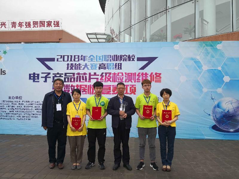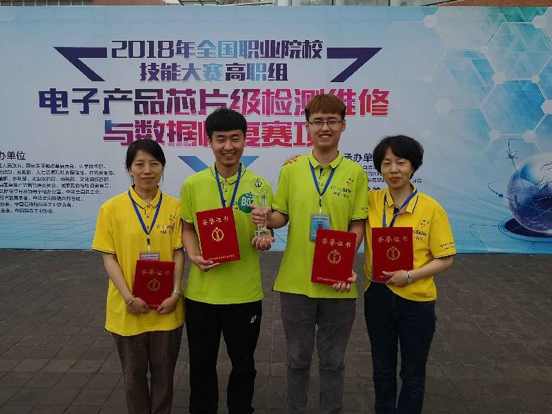 5月9日上午,2018年全國(guó)職業(yè)院校技能大賽(高職組)電子產(chǎn)品芯片級(jí)檢測(cè)維修與數(shù)據(jù)恢復(fù)賽項(xiàng)在寧夏工商職業(yè)技術(shù)學(xué)院正式開賽,全國(guó)75個(gè)院校代表隊(duì)和一個(gè)國(guó)際代表隊(duì)的152名選手參加了本次比賽,山東電子職業(yè)技術(shù)學(xué)院代表隊(duì)在張訓(xùn)華院長(zhǎng)的帶領(lǐng)下參賽。經(jīng)過(guò)4個(gè)小時(shí)的緊張比賽,大賽共決出團(tuán)體一等獎(jiǎng)8個(gè)、二等獎(jiǎng)15個(gè)、三等獎(jiǎng)23個(gè),我系學(xué)生朱文正、田洋銘代表我校參賽,獲得第三名、團(tuán)體一等獎(jiǎng),喬英霞、陳雙獲得優(yōu)秀指導(dǎo)教師稱號(hào)。